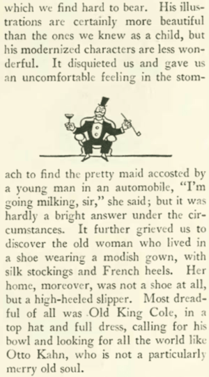 BIG DADDY…WillyPogany’s rendering of Old King Cole left something to be desired, according to E.B. White, who found the resemblance to investment banker OttoKahn (below) rather unsettling.(comic art fans.com/thoughtco.com)