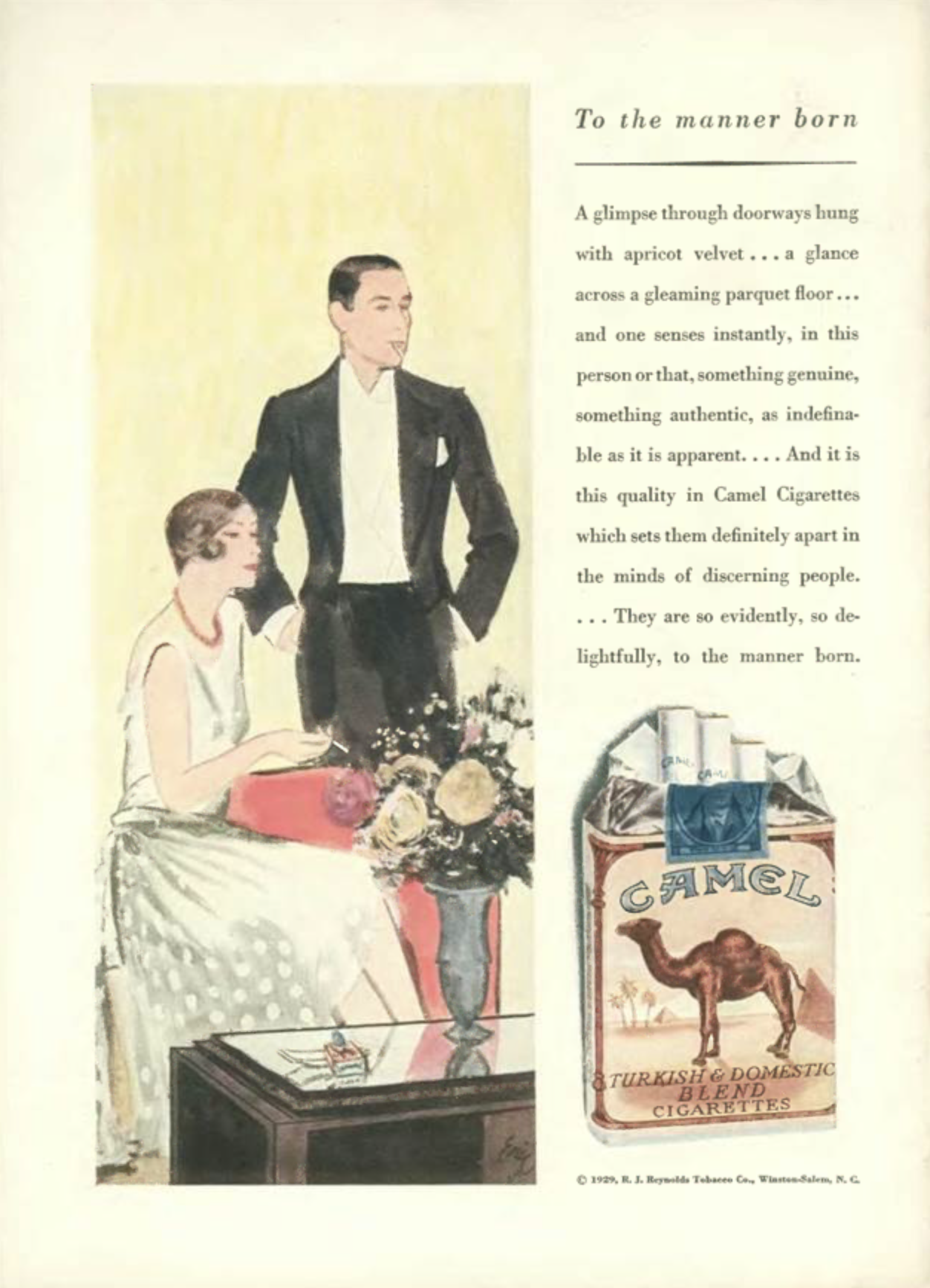…despite the crash, the folks at R. J. Reynolds Tobacco Company still clung to the fantasy of the posh set…you might be flat broke, but you could keep a stiff upper lip while you sucked on a Camel, old sport…