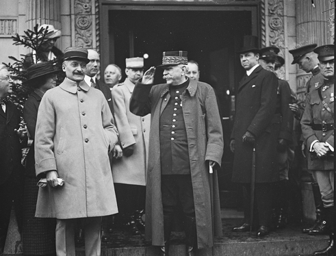 AU REVOIR…French Field Marshal Joseph Joffre (saluting) in 1922. (Library of Congress)