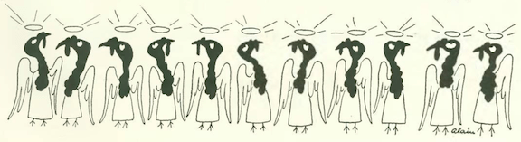 …on to our cartoonists, we start with this delightful spot art by Christina Malman that graced the bottom of the calendar and events page…