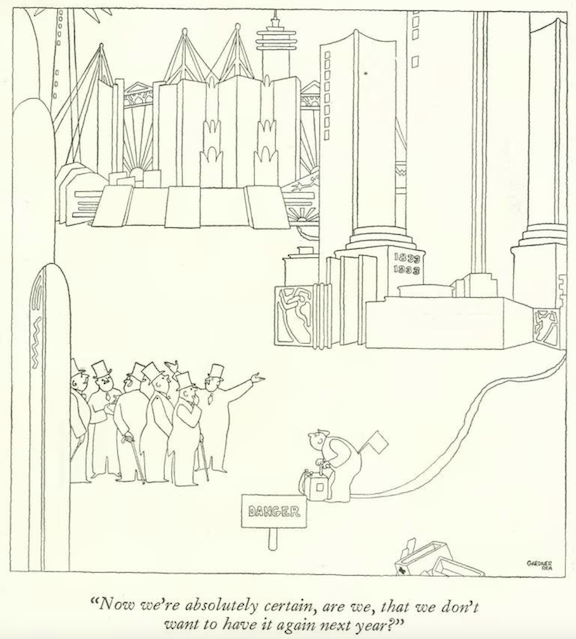 …on to our cartoonists, beginning with Alan Dunn’s rather dim view of Robert Moses’s generously funded parks department…