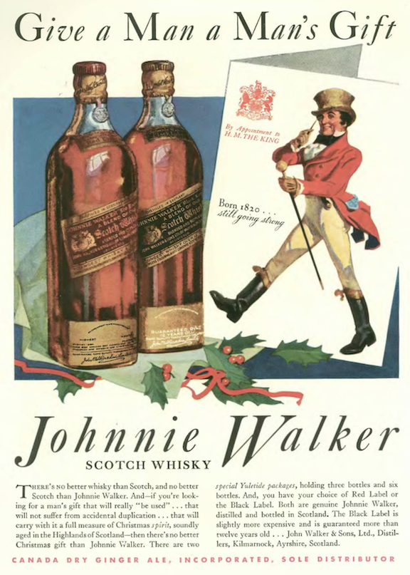 …the magazine grew thicker with many Christmas-themed ads, including this one from Johnnie Walker…