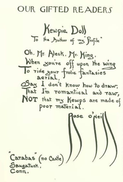 …which featured (on page 135) a handwritten letter from Kewpie Doll inventor Rose O’Neill, who commented on her recent New Yorker profile…