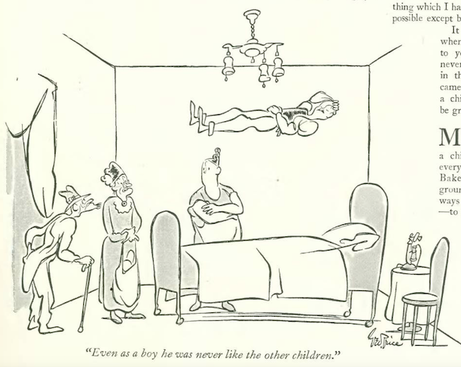 …Charles Addams took the top of page 29 to show us a proud papa in a maternity ward…