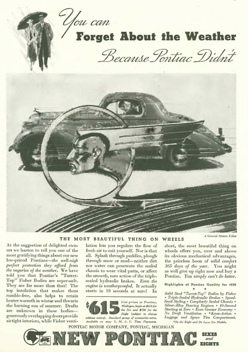 …many automobile advertisements of this era emphasized safety, none more prominent than the “Body by Fisher” ads that frequently featured happy little children…oddly, no one had yet considered seat belts, car seats or other safety measures we now take for granted…