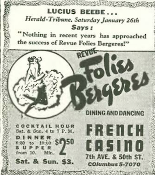 Lois Long had mixed feelings regarding the Rockefeller Center’s Rainbow Room, fearing that it was a tourist magnet but also desiring to take in its sumptuous floor shows. In the first excerpt, Long continued her comment on the heated competition she perceived among nightclub owners.