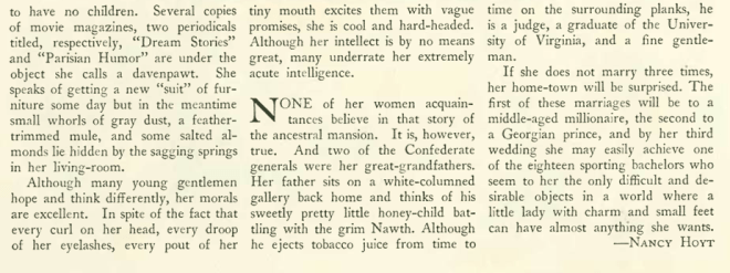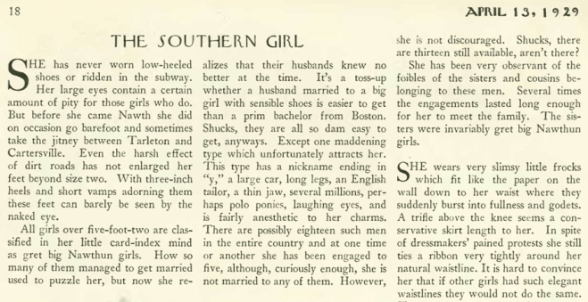 The April 13, 1929 issue featured Hoyt’s sharp satirical piece about a fictional Southern Girl…