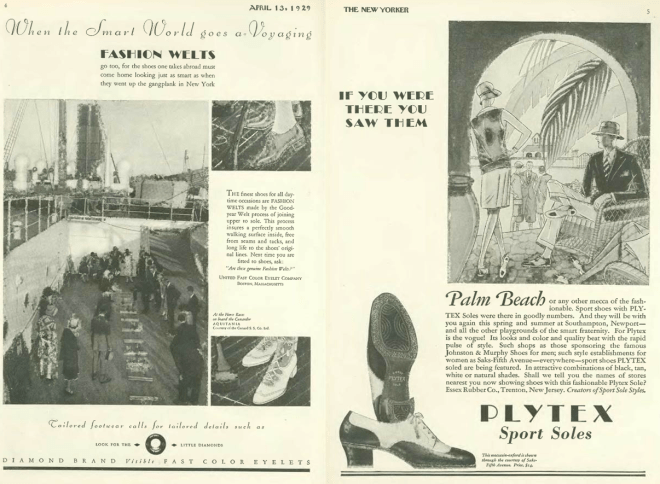 Spring had sprung and so did “fashion welts” and rubber-soled Plytex shoes suitable for ship decks or leisurely strolls along Palm Beach…