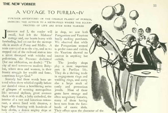 …Arno continued to provide illustrations for Elmer Rice’s serialized novel, A Voyage to Purilia…