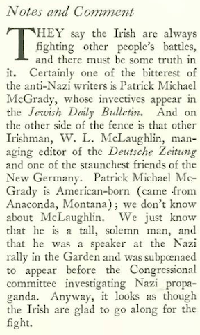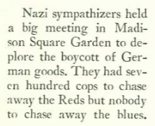 ...and we close the June 9 issue with this item from E.B. White, who commented on a recent rally of American Nazis and some fighting Irish...