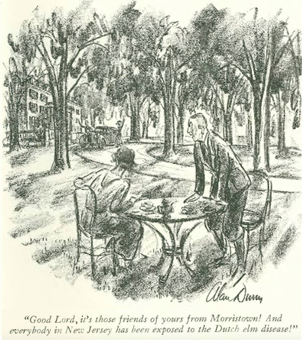 In his “Notes and Comment” E.B. White observed the absurdity of a grown man riding alone in a rumble seat. These seats were phased out by 1939 in American autos (the British, who called them “dickies,” abandoned them a decade later). Rumble seats were unsafe, to be sure, but it was also unpleasant to sit near the exhaust pipe and collect the dust, grit and bugs that would merrily dance around one’s eyes, nose and mouth.