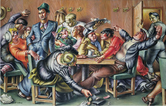 NIGHT LIFE…Paul Cadmus depicted Stewart’s in this sexually charged painting, Greenwich Village Cafeteria, 1934, oil on canvas,Museum of Modern Art. (All archival images for this entry were obtained via nyclgbtsites.org/site/stewarts-cafeteria)