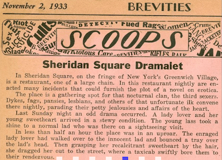 While Anderson tiptoed around the topic of homosexuality, gossip rags such as Stephen Clow’sBroadway Brevities put it front and center. Described as one of the most vicious show business gossip magazines ever published, Brevities also provided Clow with some side income: Clow and his collaborators often threatened to blackmail wealthy businesspeople and show business figures who frequented places like Stewart’s—outing them in his tabloid unless payment was made.