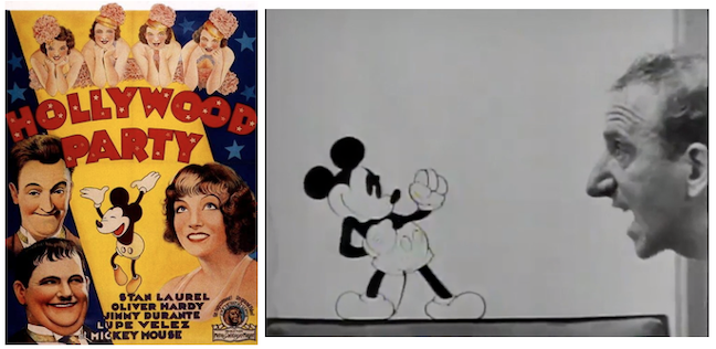 MAN OR MOUSE? The star-studded cast of Hollywood Party included Jimmy Durante, seen here duking it out with Mickey Mouse. (IMDB)