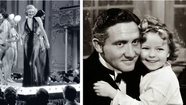 SHAKE IT WHILE YOU CAN...Ginger Rogers performs “Shake Your Powder Puff” in a burlesque show in the film Upper World, one of the last of the Pre-Code dramas. It featured Warren William as a wealthy married railroad tycoon whose friendship with a showgirl (Rogers) leads to blackmail and murder; at right, five-year-old future child star Shirley Temple with Spencer Tracy in Now I'll Tell, which was loosely based on the autobiography of Carolyn Green Rothstein, wife of New York gambler Arnold Rothstein. Temple's role was a minor one, however her appearance in the musical Stand Up and Cheer!, which was released a month earlier, would make her a star. (IMDB)