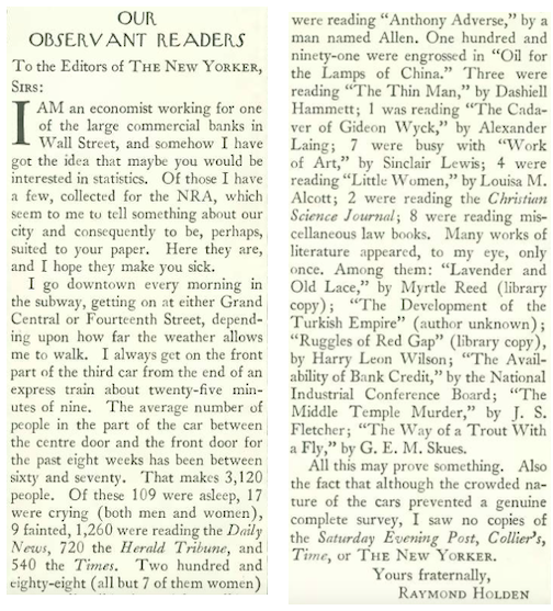 Before I close, a bit of housekeeping. The first issues in 1925 sometimes ended “The Talk of the Town” with…
