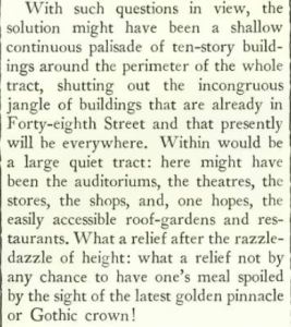Today we know 30 Rock as one of the most iconic and beloved places in Manhattan, but after Mumford saw the plans for this future “Radio City” he went into exile in upstate New York, upset over the “weakly conceived, reckless, romantic chaos” of the project. Mumford wasn’t alone in his opinion; indeed it was his commentary that helped fuel negative reactions from citizens and newspapers alike.