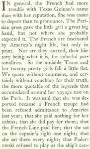 “The Talk of the Town” looked in on singer Ethel Waters, who apparently wasn’t brooding over the difficulties of her past life, given that she was seeing so much success as a recording artist and as a Broadway star in As Thousands Cheer. Although her material life was better, she still faced racism wherever she went, including on stage—although she received equal billing, she was segregated from her co-stars in As Thousands Cheer.
