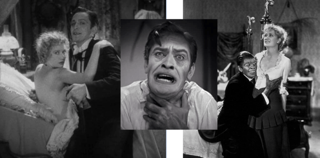 IDENTITY CRISIS…Bar singer Ivy Pierson (Miriam Hopkins) in a state of undress as she tries (unsuccessfully) to seduce Dr. Jekyll (Frederic March); when Jekyll turns into Mr. Hyde, however, the tables are turned, much to Ivy’s distress. (IMDB)